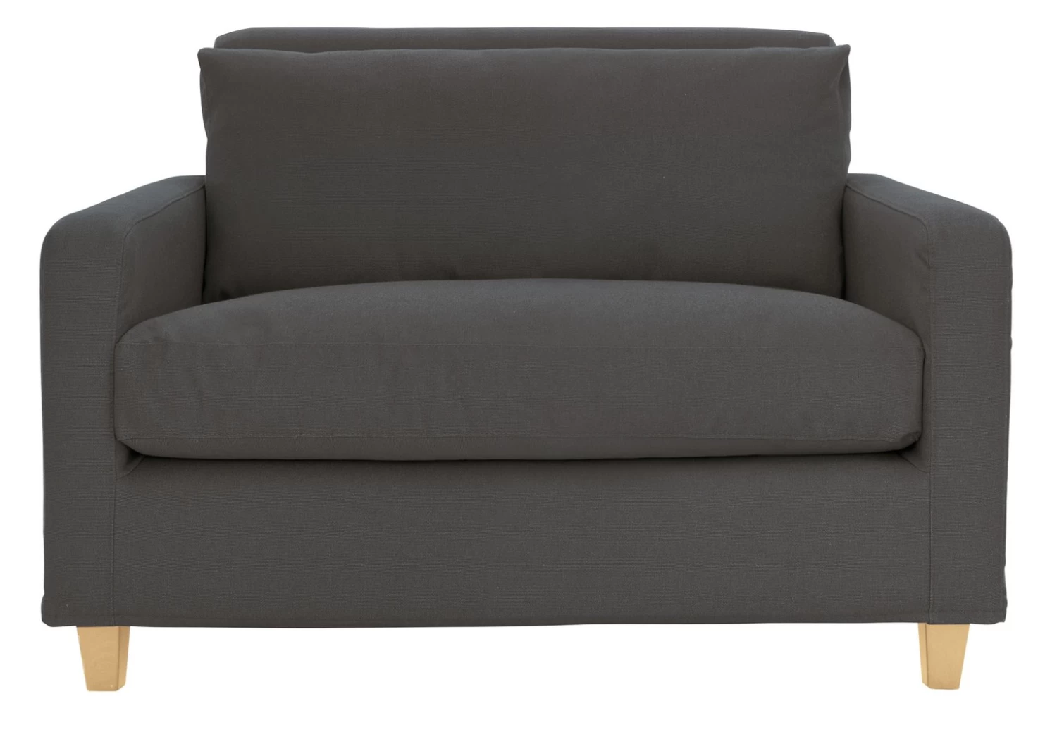 Lounge in style with this Italian made Chester charcoal compact sofa, which features a slim profile and a feather and fibre seat cushion, for a classic and timeless look. Designed by Matthew Hilton for Habitat and is fully upholstered in a removable, durable cover with oak stained feet. Part of the Habitat bestselling classic Chester sofa range, available in leather and fabric options, in various sizes and colours and with oak stained or dark stained feet.