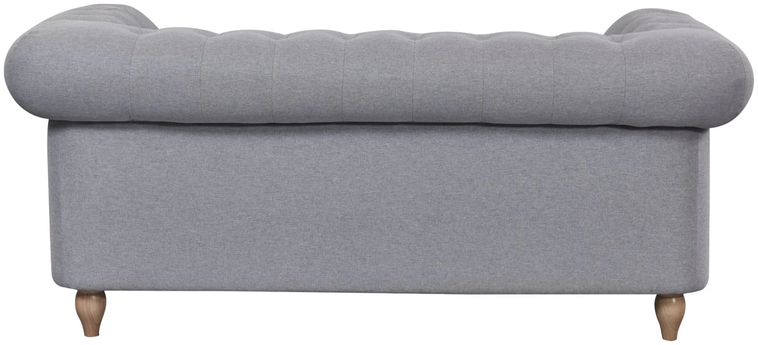 Searching for a classic statement sofa? You can't go wrong with our rich grey polyester 2-seater Chesterfield. It has all the iconic features you'd expect with this traditional design. A low padded back with deep button tufting, elegant scroll arms and turned wooden legs. Plump pocket sprung cushions and piped detailing add to its upmarket credentials. This is one timeless, tasteful seat. Need we say more?