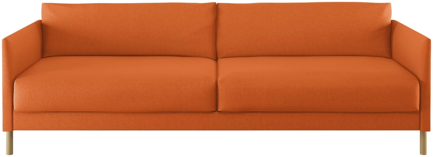The Hyde orange soft, easy-care fabric 3 seater sofa bed delivers high comfort with slender proportions. Contrasting a narrow, slim frame and legs with large, deep cushions, the sofa has a sleek, uncluttered profile. Upholstered in an easy-care, soft yet extremely hardwearing fabric, the sofa has deep seating and generous padding, providing long-lasting durability and ultimate comfort. Part of the Hyde sofa collection available in various colours and sizes.