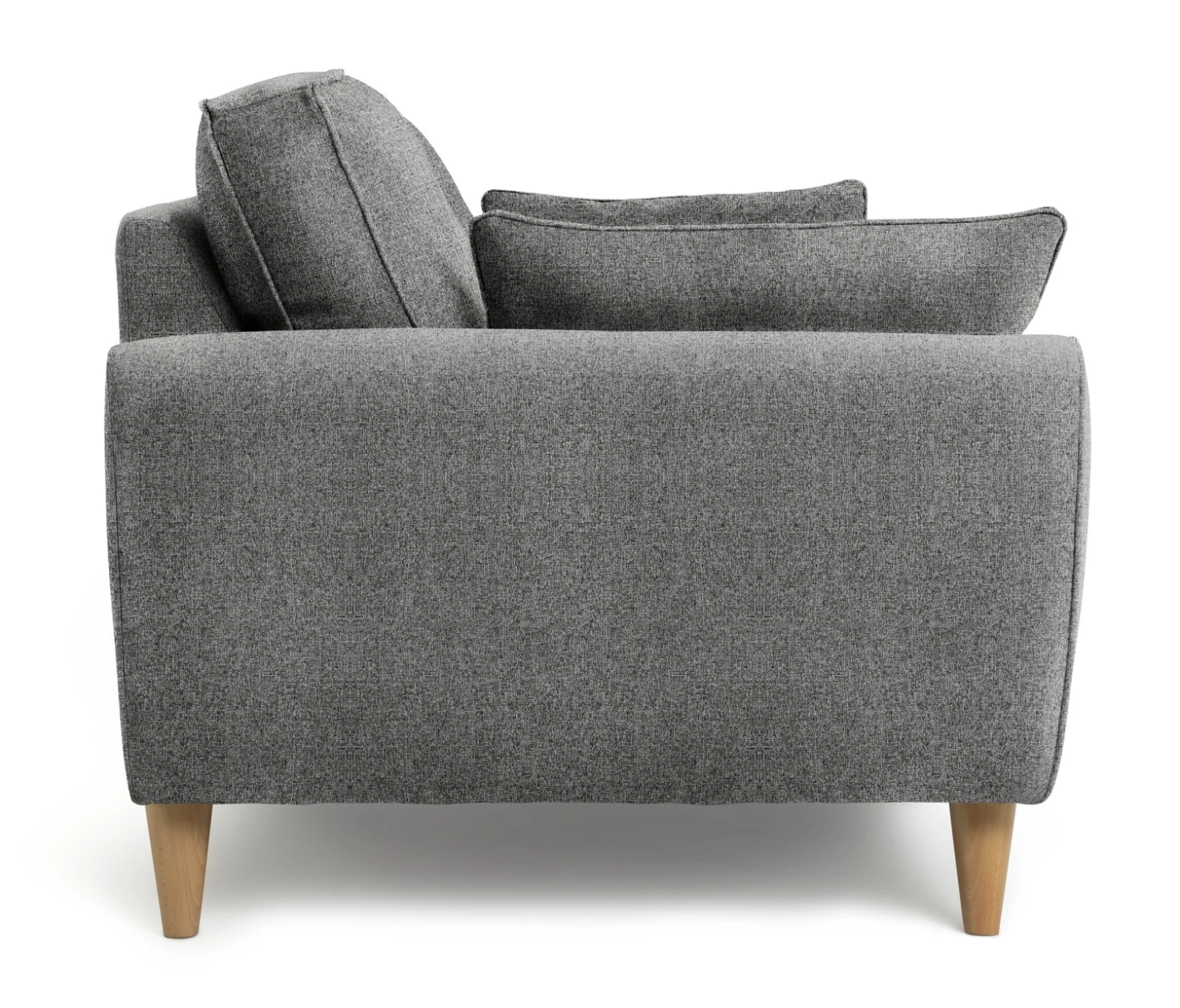 Capture the retro look with our 3-seater Isla sofa. Upholstered in a woven grey fabric, it features mid-century modern touches like clean curves, a button back cushion and splayed beech wood legs. Plump up the removable cushions and settle in.