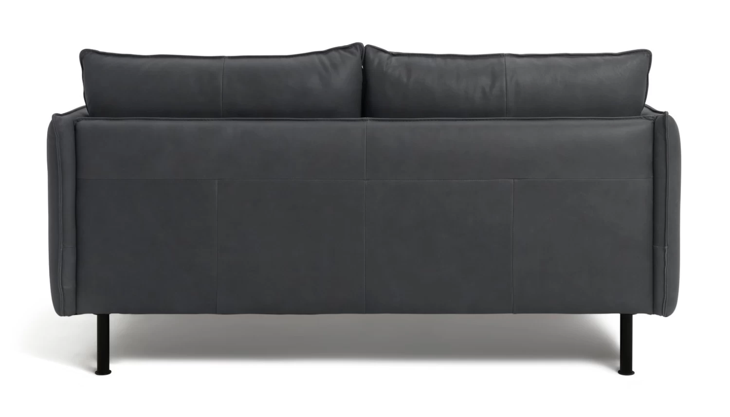 Big on comfort and style. Handcrafted from 100% genuine aniline leather, our Moore 2-seater grey sofa displays a minimal, contemporary silhouette. Deep comfy removable cushions, plump fixed seating and stitched detailing all add to the high-end design. Slim metal legs complete the picture. A perfect place to sit back and relax. Moore please.