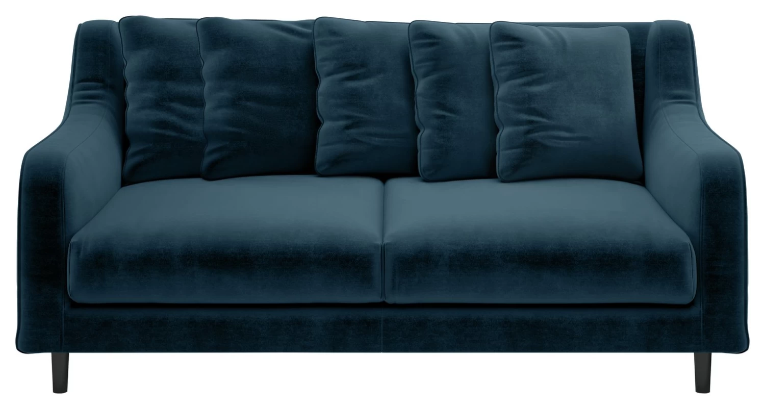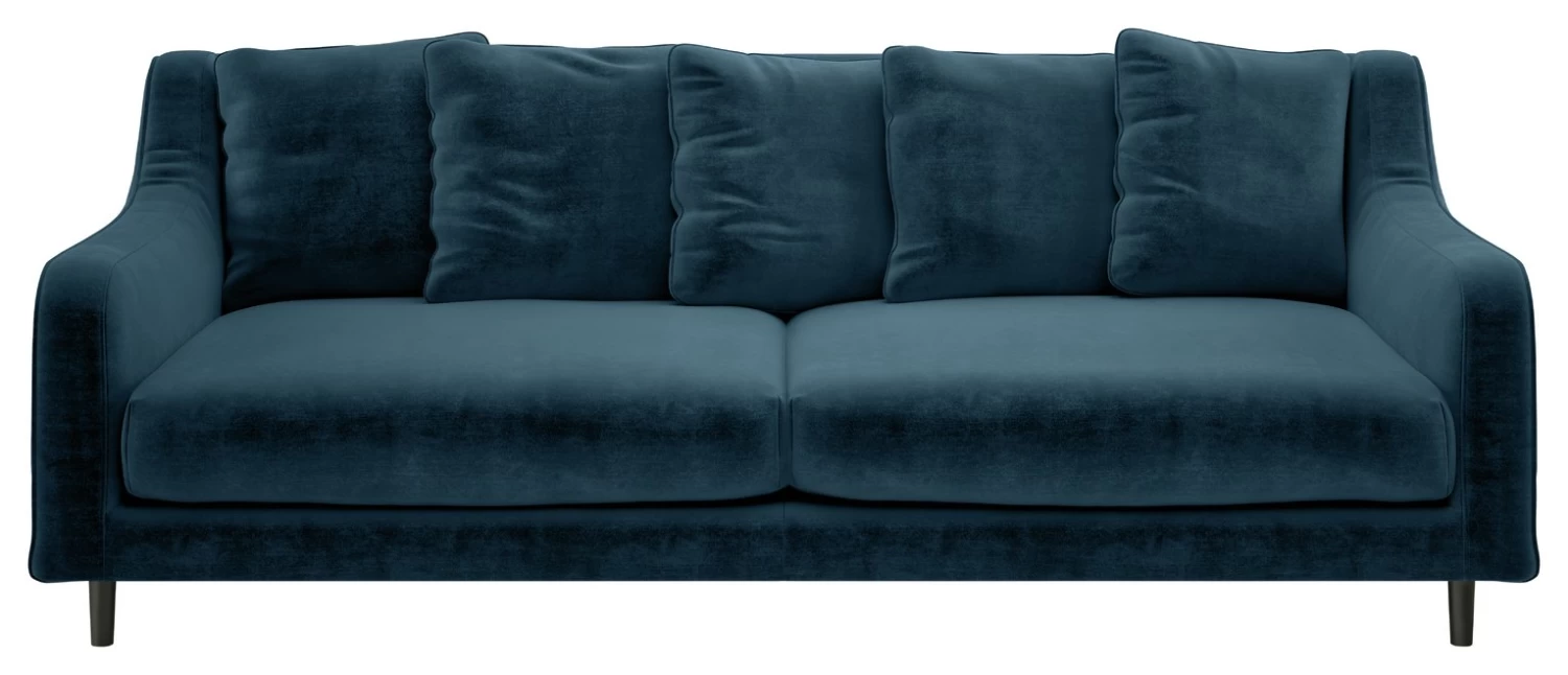 With elegant curved arms and deep seated cushions, the Swift 3-seater piave velvet ink blue sofa gives a nod to a mid-century design. Upholstered plump, feather-topped foam seat cushions and feather-filled scatter back cushions offer your body a high level of support as well as a sink into comfort feeling. A detailed Stitch runs across the curved arms that add to the design and gives the right amount of opulence. Perched on Dark oak legs, the grain of the wood compliments the sofa in luxurious ways.