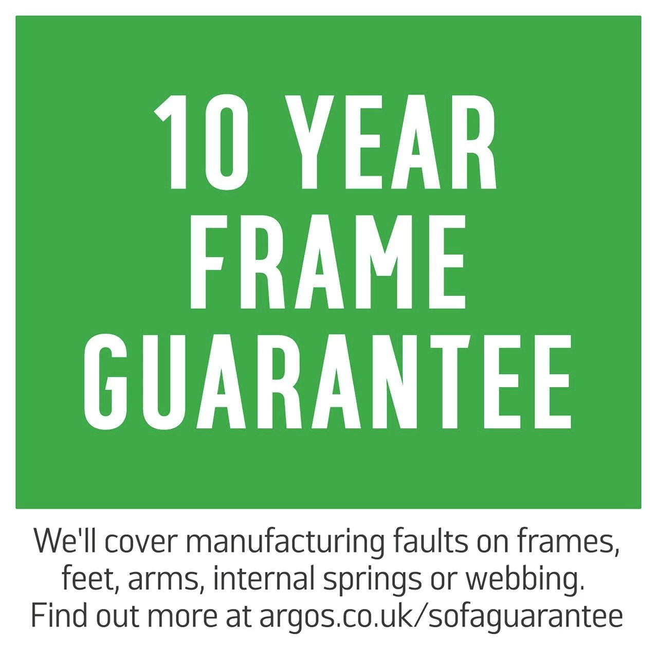 - Manufacturer's 10 year frame guarantee.